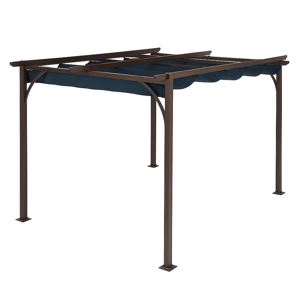 Pergolas de jardin en métal marron avec tissu polyester bleu, 300 × 400 cm